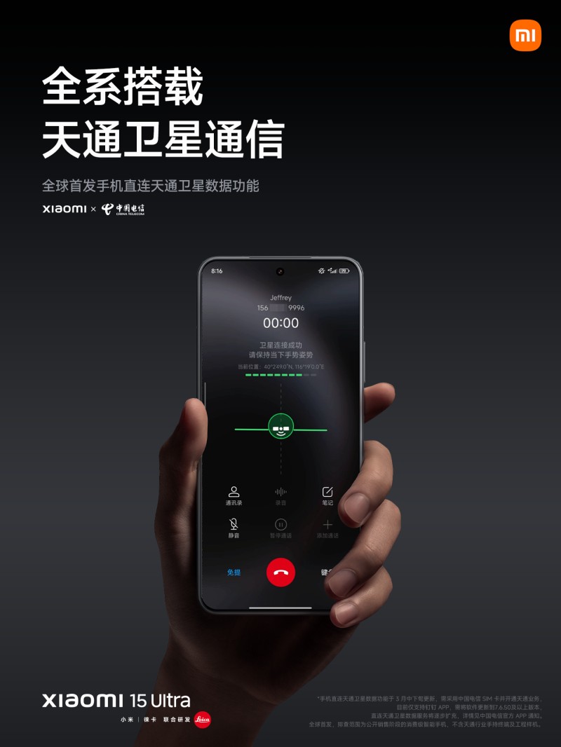 通信性能成为小米史上最强,小米15 Ultra搭载了小米星辰通信系统,配备了三颗自研通信芯片,大幅提升通信性能,支持无网通话和天通卫星通信,全球首发手机直连卫星数据功能,领先行业。